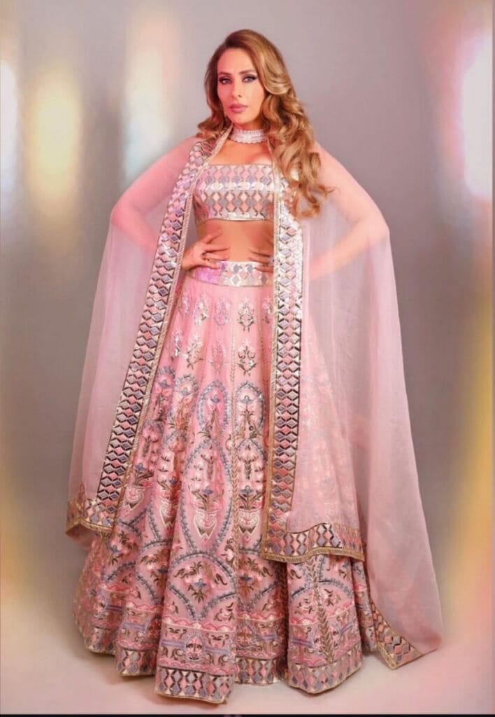 8. Iulia Vantur – Pretty in Pink for Day 8 Pink represents love and compassion, and Iulia Vantur shows us how to wear it with style. Her soft pastel pink ensemble is the color to radiate grace and charm during Navratri.