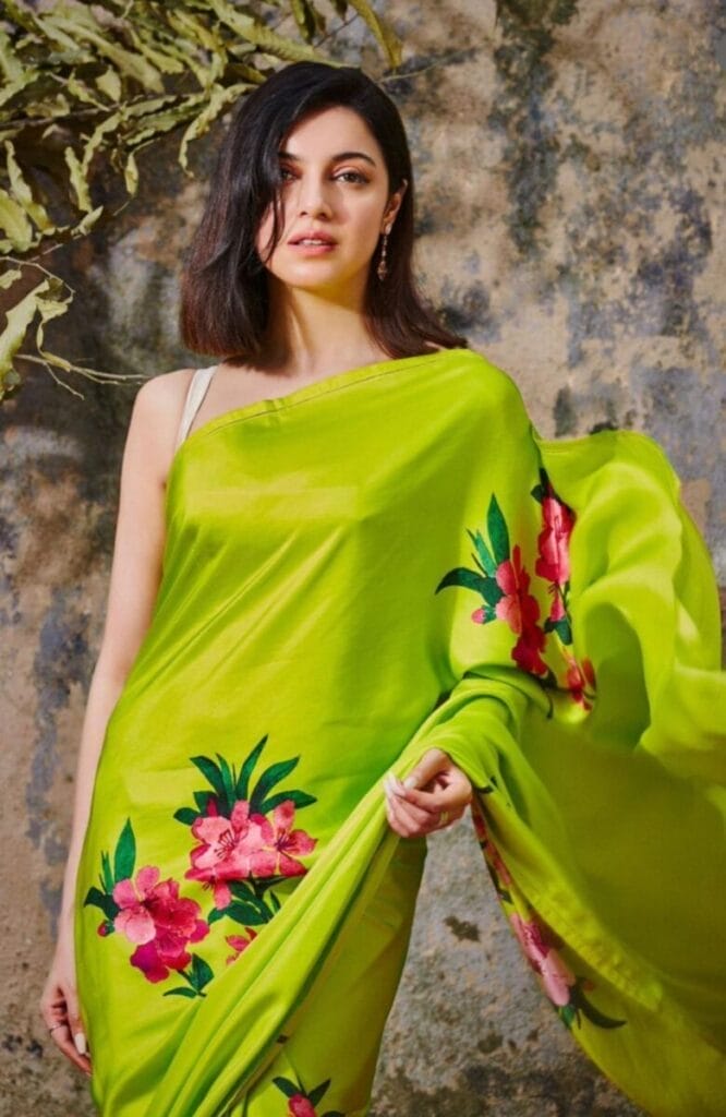 7. Divya Khossla – Lush Green for Day 7 Green is the color of prosperity and fertility, and Divya Khosla Kumar gives the perfect dose of festive elegance in her green floral saree.