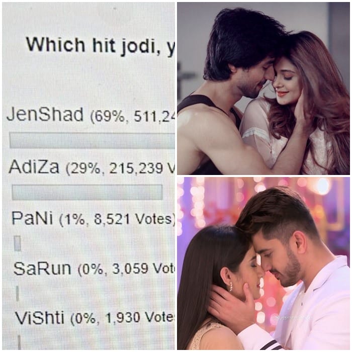JenShad fans won the poll by 69% of votes which amounts to 511,247. AdiZa fans stood at second spot gathered 29% of votes with 215,239 votes. Third, Fourth and Fifth goes to PaNi, Sarun and Vishti. Total votes are 741,651.Â