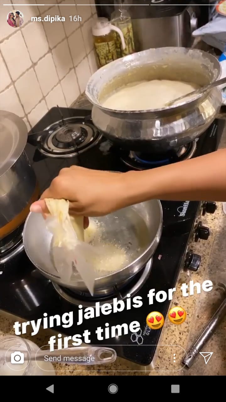 Last, we reported Dipika Kakar is spending quarantine time with her husband Shoaib Ibrahim by playing shuttle. Now, actress has recently updated her insta story where she made her fans to seek into her kitchen where she was making Jalebi’s.