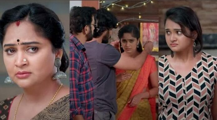 Later, Vedavalli notices that the nuptial thread is missing from Vidya’s neck and questions Vidya about it. Vidya grows anxious. Preethi also urges Vidya to answer. Chandramohan saves Vidya by lying that her nuptial chain cut off getting stuck in a tree branch. Sanjay makes Vidya wear the nuptial threat in front of Vedavalli.