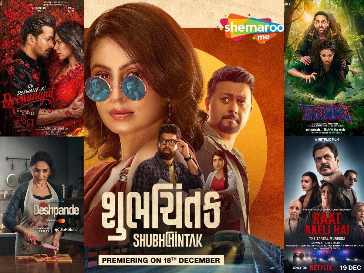This week is packed with exciting OTT releases, making it a perfect weekend for binge-watching. From horror-comedy and intense romance to dark thrillers and crime dramas. Whether it’s Ayushmann Khurrana and Rashmika Mandanna’s Thamma or Manasi Parekh and Swapnil Joshi’s Shubhchintak, these fresh OTT titles deserve a spot on your watchlist.